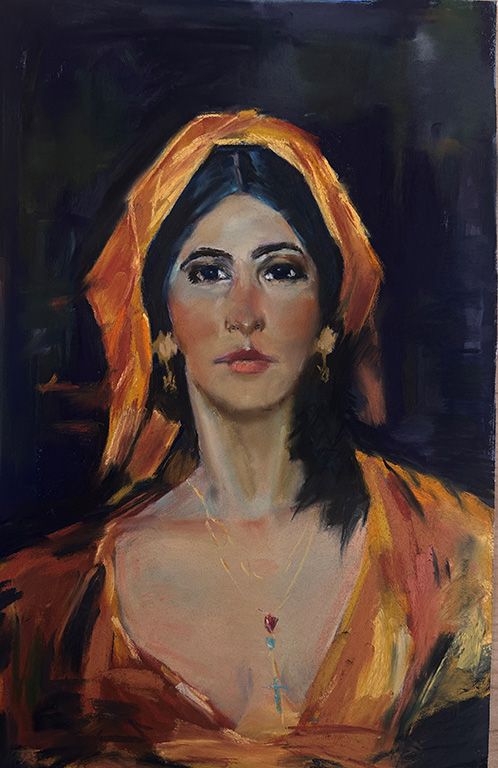 A veil becomes both subject and device: it softens edges, filters light, and reveals the face in stages. The composition plays opacity against translucency, letting the material’s movement set the rhythm while the sitter’s expression quietly anchors the scene.